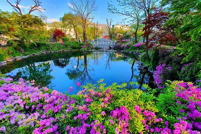 황지연못은 태백의 대표적인 자연 경관 중 하나로, 특히 여름철에 방문 시 푸르른 자연을 만끽할 수 있습니다. 연못 주변의 조화로운 경관은 사진 찍기에 안성맞춤이며, 많은 사람들에게 사랑받는 장소입니다. 여름철에는 연꽃이 만개하여 아름다운 풍경을 연출하고, 가을철에는 단풍이 장관을 이룹니다. 이곳은 사계절 내내 방문할 만한 매력이 있는 곳입니다.'