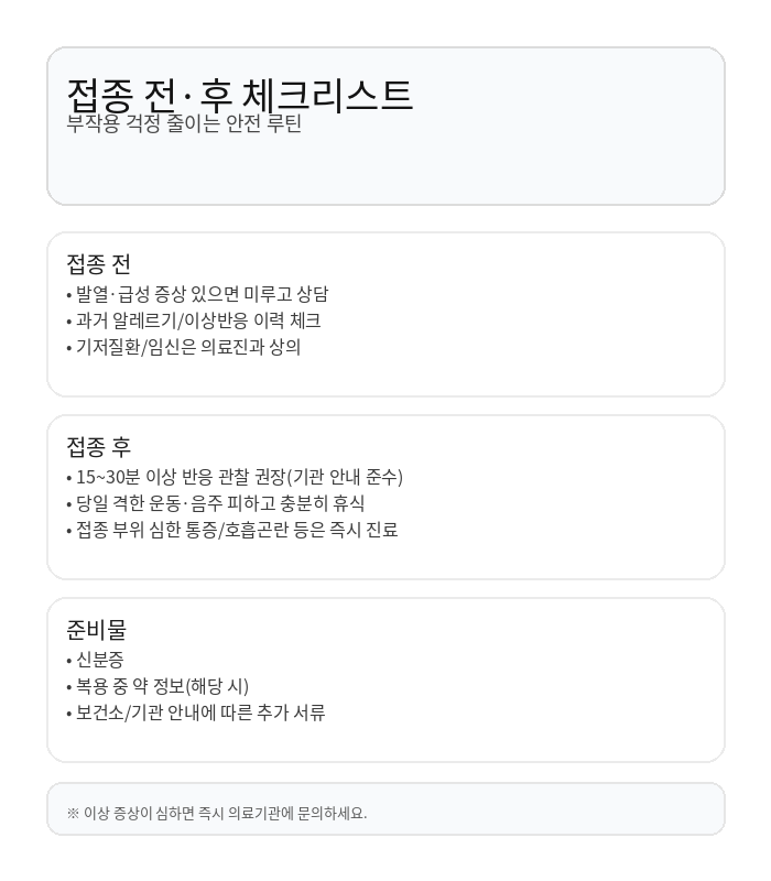- 접종 전·후 체크리스트