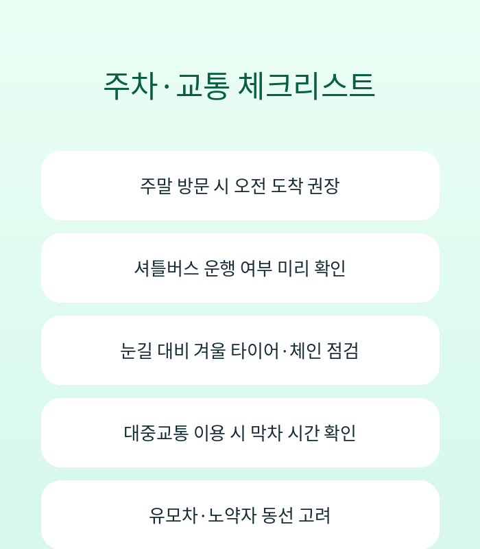 - 주말·공휴일: 셔틀버스 이용 시 대기시간 단축