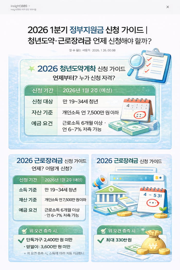 특히 청년·근로·소득 지원 정책은 1분기에 기준 정비 → 상반기 신청으로 이어지는 구조가 많아 지금부터 흐름을 알고 준비하는 것이 중요합니다.