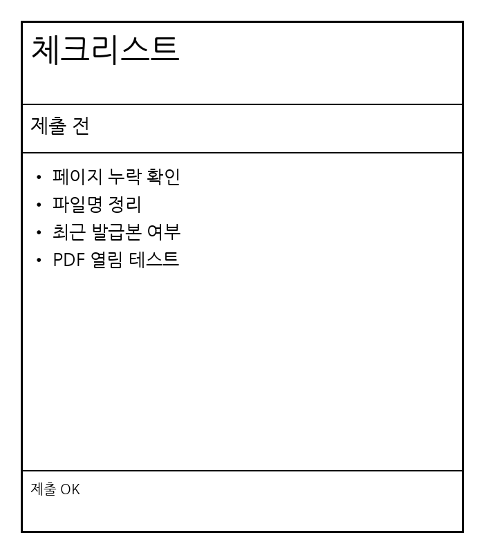 PDF가 저장되면 끝이 아니라, 제출 전 체크가 필요합니다. 첫째, 페이지 누락 여부입니다. 문서가 2장 이상인데 1장만 저장되는 실수가 흔합니다. 둘째, 파일명 정리입니다. 제출처가 여러 곳이면 “서류명_제출처_발급일” 형태로 정리하면 관리가 편합니다. 셋째, 제출처가 “최근 발급본”을 요구하는지 확인하세요. 특히 행정/금융 제출은 발급일을 보는 경우가 많습니다. 넷째, 캡처 제출은 피하는 게 안전합니다. 대부분 정식 PDF 또는 출력본을 요구합니다. 마지막으로 회사 메신저/메일로 보낼 때는 개인정보가 포함될 수 있으니 공유 범위를 최소화하고, 제출이 끝나면 불필요한 파일/링크를 정리하는 습관이 좋습니다. 이 체크까지 하면 “PDF는 만들었는데 다시 제출해달라”는 상황이 크게 줄어듭니다.